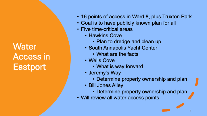 Hello Eastport! City Dock: Press conference was held on Friday, 3/6/26 , announcing Annapolis has received the $33M+ FEMA Grant for City Dock – the project is on track. Calendar of Events: Town Hall